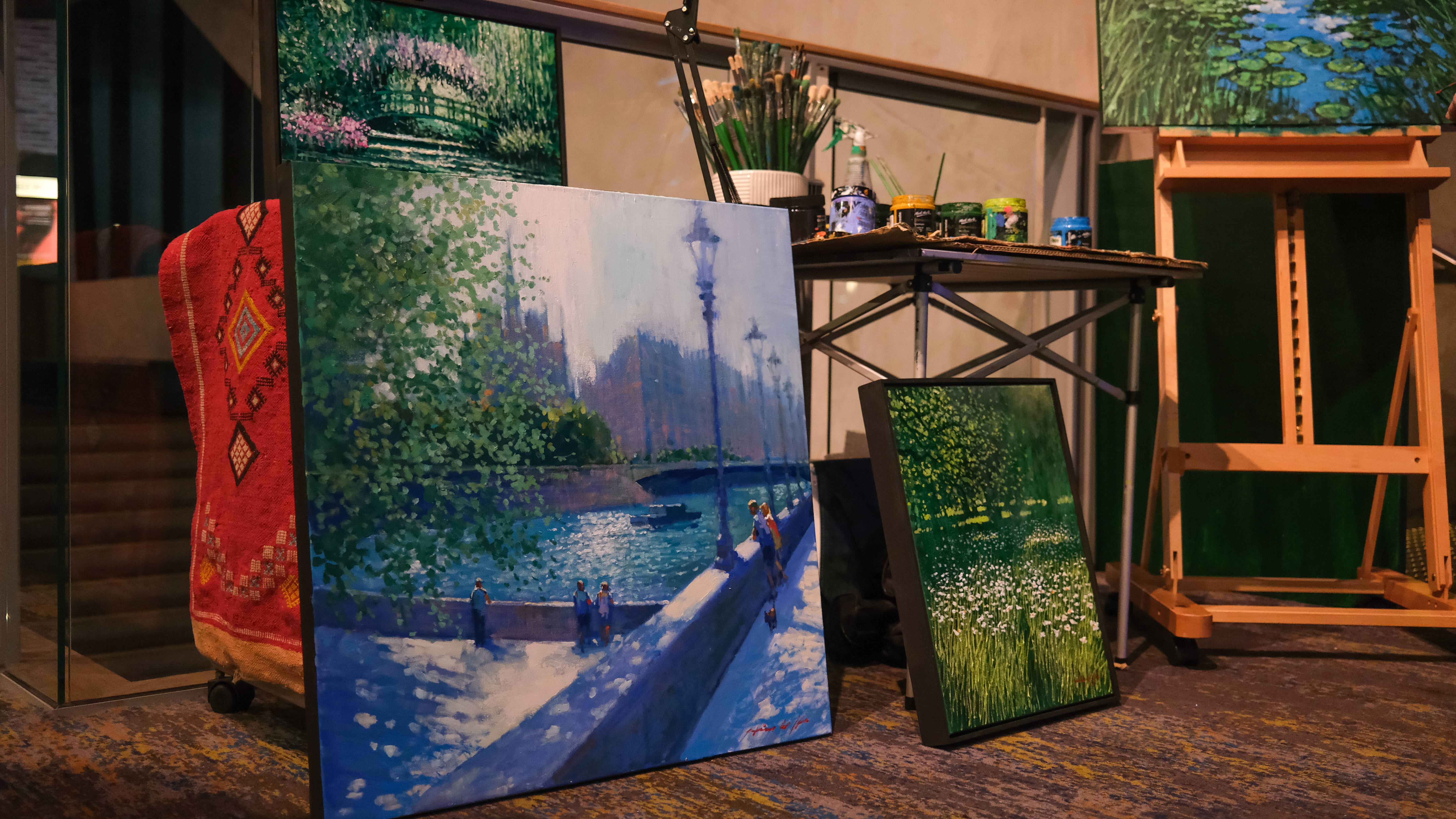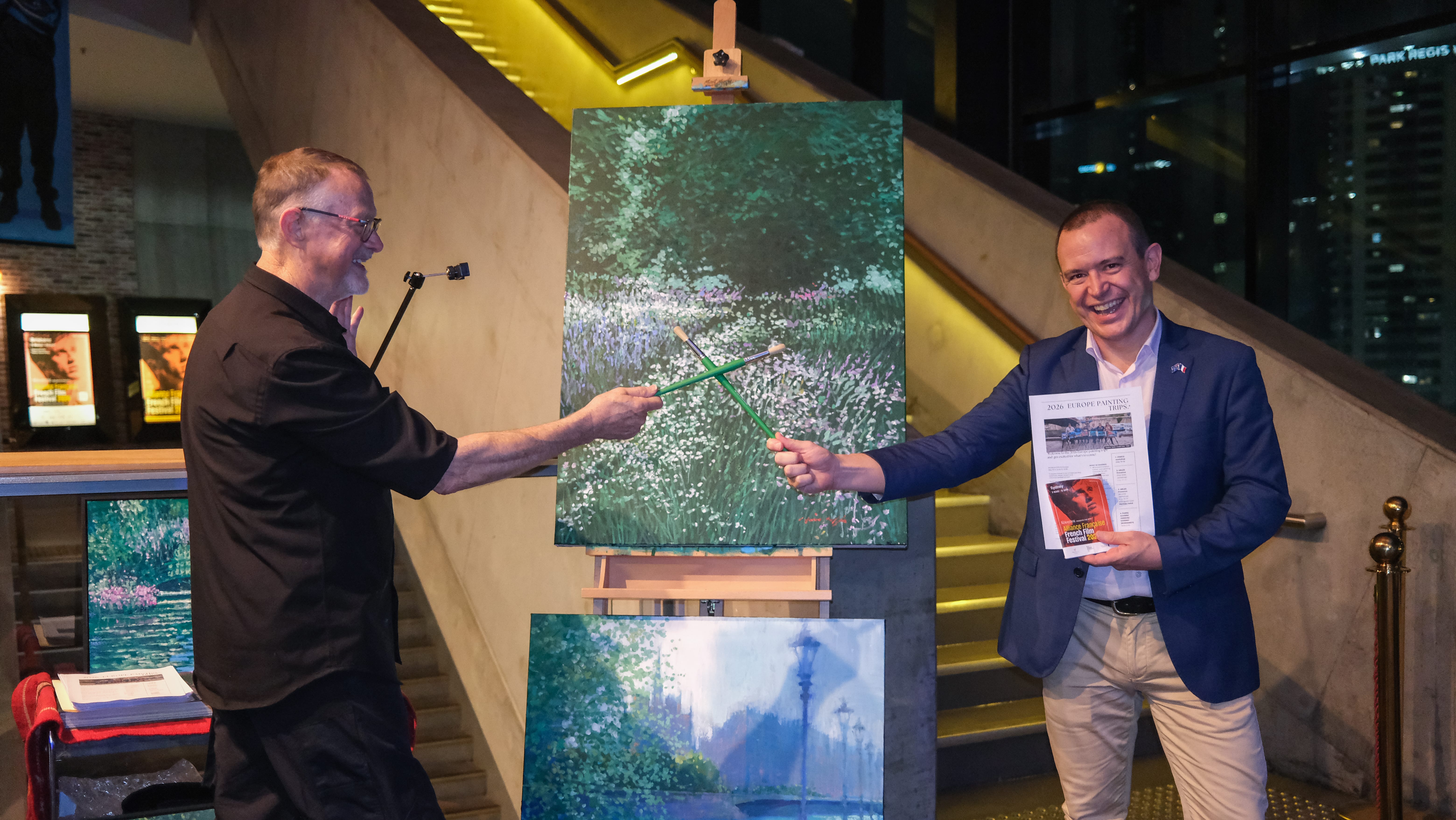 Professor Graeme Nimmo RFD, Patron of the Alliance Française de Brisbane introduced the festival before the beautiful film, Colours of Time. After the film, the afterparty commenced with DJ Orelee, an immaculate spread of cheese and the completed paintings, made only more beautiful after the viewing of the film.
