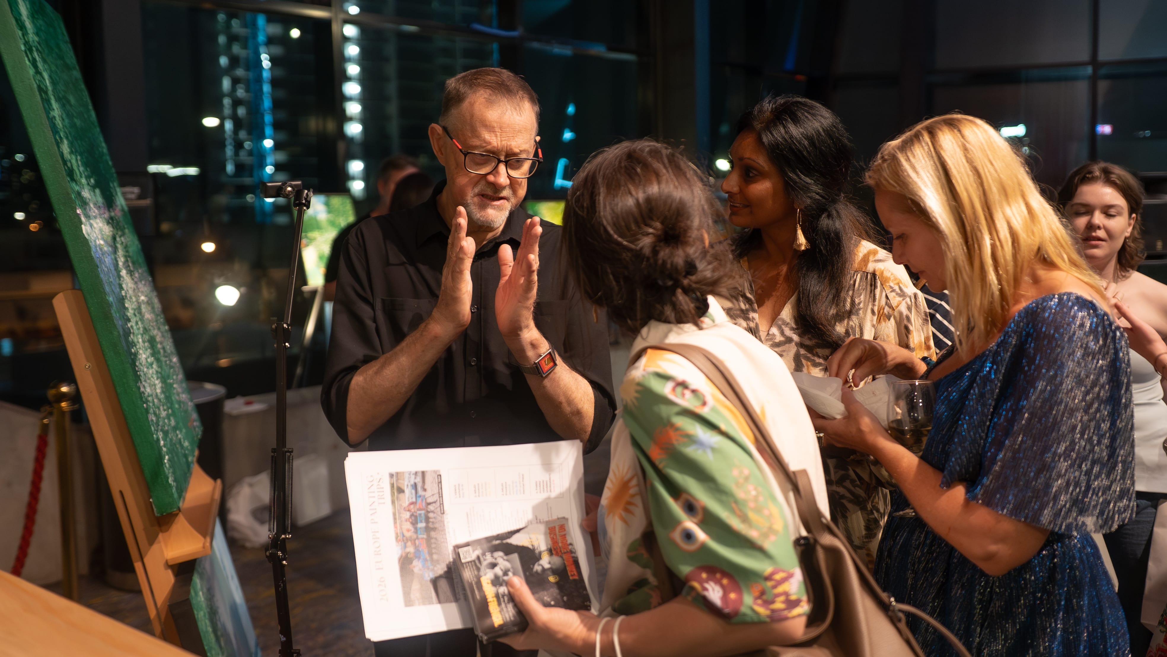 wine, to mingle with the gorgeous city views as their backdrop and watch live painter, Dr. David Hinchliffe, former deputy-mayor work