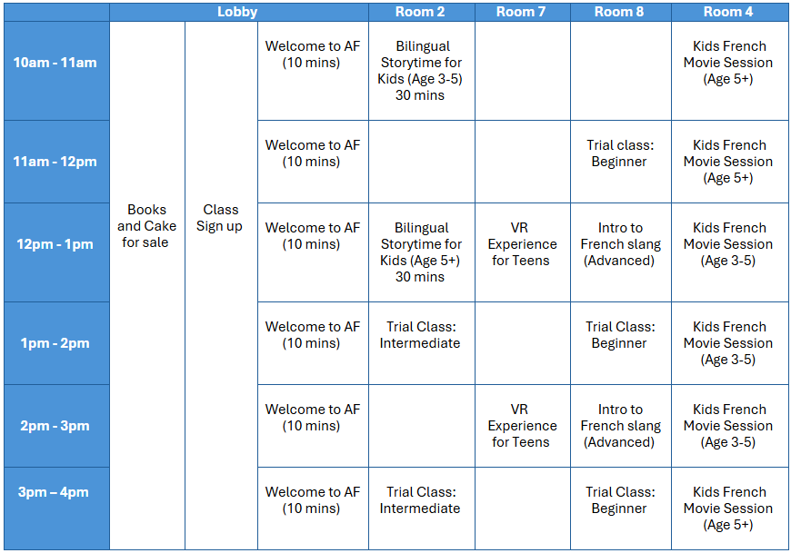 Join us for a fun and inspiring Open Day where language and culture come to life. Enjoy free French classes for adults, a cosy cinema session for kids, immersive VR experiences for teens, and bilingual story time for our youngest visitors. Take part in talks and presentations en français, meet our friendly team, and explore our wide range of courses, workshops, and cultural events.